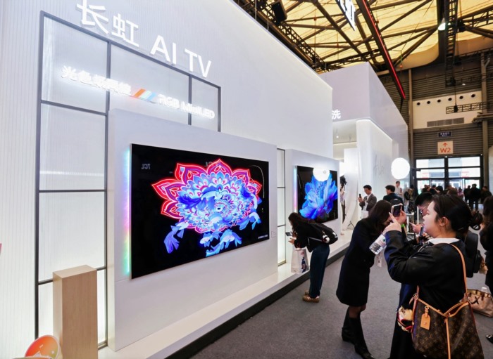 展会首日,长虹电视携行业首款光色场同控 RGB MiniLED电视——长虹金标T70S首次亮相,创新推出AI全链路光色场同控技术方案,解决传统RGB显示偏色、串色难题,实现色彩纯净度与画质突破;行业首款RGB氛围光壁画电视追光Q70S同步亮相。新品搭载情感化AI交互,支持自定义视频开机、一句话投屏等功能,开启新一代智慧交互体验。