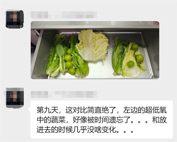 当切开的苹果在空气中逐渐变黄,我们目睹的正是氧气催化的变质过程。为了破解这一难题,追觅冰箱的超低氧恒鲜技术通过将环境氧含量控制在5%,相当于抽走了大部分“时间催化剂”,为果蔬保鲜按下暂停键。在这一超低氧环境中,果蔬的呼吸代谢大幅减缓,仿佛进入休眠状态,显著降低营养与水分流失。实验证明,该技术可将果蔬保鲜期延长至21天,花青素保留率提升231.52%,维生素C保留率提升137.24%。同时,绝大多数导致腐败的霉菌和细菌因缺氧难以繁殖,从源头延缓变质。有内测的用户分享,九天后普通保鲜抽屉中的蔬菜已明显发蔫泛黄,而超低氧环境中的仍如刚采摘般鲜绿饱满,“仿佛被时间遗忘了”。