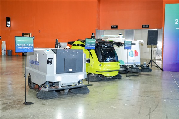 开幕首日,由广州市城市管理和综合执法局、广州市总工会主办,广州环卫行业协会承办的“羊城工匠杯-广州市自动驾驶环卫清扫设备技能竞赛”火热开赛,盈峰智能、有鹿智能、申迪智能、广环厂、极目科技等环卫企业齐聚赛场,一展智慧环卫科技实力。竞赛现场,YFSLR14小蜜蜂清洁机器人、有鹿AI130智能巡扫机器人、M9智能清洁机器人、广环厂GS1无人驾驶清扫机器人、极目无人驾驶清扫车、H1无人扫地车等一系列前沿智能环卫设备齐聚争锋,同台竞技拼实力,吸引了现场观众热烈观赛与探讨合作。