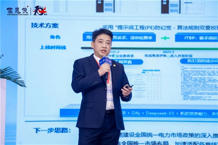 正泰新能源开发有限公司信息管理部总经理王伟先生围绕企业AI应用实践展开,指出当前AI工具散乱、适配成本存疑的痛点,但强调AI是数字化转型必答题。王伟先生分享了三个已落地的低成本、易上手、可复制的AI场景:光伏电站电费结算,借助AI将单份结算单整理、核对时间大幅压缩,节省大量工时;储能逆变器出海业务的多语言翻译,通过AI智能体缩短周期并节省超80%外包费用;设备维保领域,AI实现“故障一报、方案即到”,压缩故障处理时间与人员培养周期。此外,还总结了AI应用的感悟,包括聚焦业务痛点、做好数据治理、小步快跑推进,以及业务、ITBP、技术人员组成的 “铁三角” 角色和四层落地架构等。
