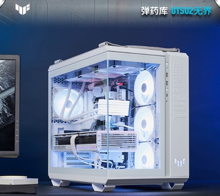 首先,小编为大家带来的是弹药库ATX无界版机箱。其提供黑白双色,采用无立柱双面钢化玻璃设计,可全方位展示内部RGB灯效,满足高颜值桌搭需求。另外,该机箱兼容性出众,支持ATX主板、400mm长度显卡及200mm电源安装,并预留13个12cm风扇位与3个360冷排安装空间,风道设计灵活。再加上独特的左右双仓结构,将主板、显卡等核心硬件置于左侧展示仓,电源与硬盘置于右侧独立散热仓,扩展能力非常强大,十分适合电竞玩家,而且双11期间到手价最低仅需899元。