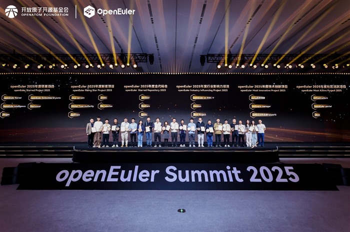 开发者为开源欧拉社区的持续技术创新与生态繁荣注入智慧和力量。会上,颁发openEuler 2025年度突出贡献单位、openEuler 2025年度项目之星及openEuler 2025年度贡献之星。从产学研协同的深化,到核心技术突破,openEuler正稳步向前,为智能时代构筑算力基础设施的核心基石。
