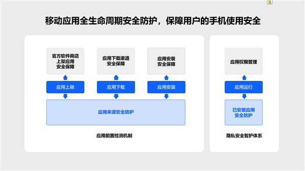 据工信部数据显示,截至2025年6月末移动电话用户规模已达18.1亿,5G用户突破11.18亿,QQuestMobile发布的2025年春季报告显示,中国移动互联网月活跃用户规模达到12.59亿。随着移动设备深度融入人们的工作与生活,隐私安全保护已从基本诉求升级为构建用户信任的核心要素。同时对用户而言,理想的安全保护不应是复杂的设置或频繁的弹窗,而是一种 “无感却可靠” 的基础体验。为实现这一目标,OPPO针对“上架-下载-安装-运行”的全链路进行优化升级:上架阶段,平台提前完成上架应用的安装包审核并提前检测包体风险;下载环节,在用户授权下,系统可直接拉起安装流程,不打扰正常操作;安装时,简化冗余验证步骤,不用反复点击确认。这一机制在从源头保障安全的同时,也将显著简化用户下载流程,提升用户使用体验,帮助开发者更高效进行应用分发。