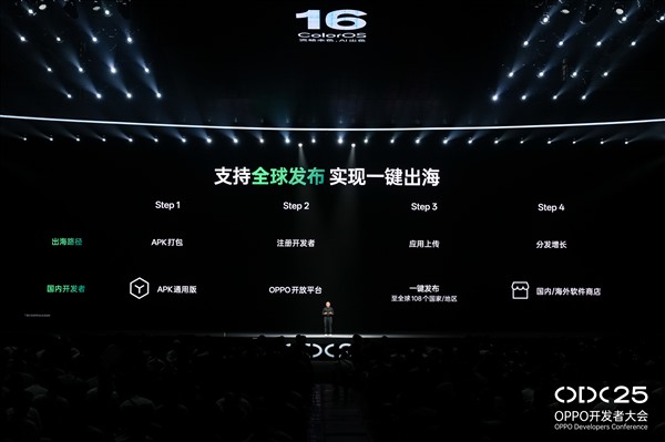 同时,OPPO应用生态全新的“一键出海”功能,为全球开发者提供更方便的海外增长通道。在OPPO应用服务所覆盖的108个国家或地区范围内,开发者均可实现APP的快速分发,无需重复打包或多次上传,真正实现"开发一次,全球发布"。