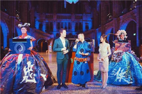 “风、水、火”等传统元素的创新诠释,胡社光通过充满想象力的大胆设计,演绎出中西方元素的交融之美。颠覆性的设计语言与英国自然历史博物馆沉静内敛的历史感相互辉映。一新一旧,一动一静的跨时空对话,带给人们强烈的视觉冲击。