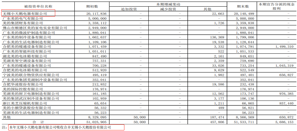 美的集团披露2020年半年度报告显示,小天鹅电器业务性质为洗衣机制造;美的集团直接持股100%。本年小天鹅电器吸收合并无锡小天鹅股份有限公司。