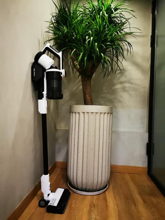 Z7吸尘器在清洁设计上也做得不错,整体的高度设计较为合理,不同身高的人通过调整角度都可以找到比较舒服的清洁姿势。笔者之前也体验过很多类似产品,但是很多产品的动力不足,往往需要自己进行助力操作。Z7吸尘器的操作确实很轻松,基本只需要扶住机器选择好清洁路线即可,充足的动力清洁起来十分轻松。同时无线的设计摆脱了线材的束缚,使用体验简直爽到飞起。
