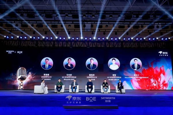 作为发布会的核心环节,现场座谈会邀请了创维集团彩电公司执行副总裁董海涛先生、京东家电家居生活事业群黑电业务部总经理马先跃先生、京东方科技集团显示器件与物联网创新业务 TV客户开发中心总监陈东川博士、京东家电家居生活事业群黑空营销运营负责人谭智先生、创维集团彩电公司国内营销总部产品规划部部长薛海啸先生同台共议,深入剖析了创维JD100 Mini的技术突破与产业价值。