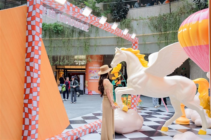 现场设置的多个打卡点成为人流聚集地,观众或立于飞马雕塑旁,定格“马到成功”的瞬间,或漫步在“棋盘”上,成为壁纸的生动元素,或与墙面上的创维壁纸电视A7H Pro合影,电视屏幕中播放的正是同款动态壁纸,与现实展陈虚实相生,引人入胜。