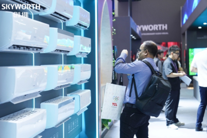 创维智能家电带来覆盖冰箱、冷柜、洗衣机、干衣机、洗碗机、空调、个护小家电等全品类阵容,以深度本地化洞察定制产品,全面满足全球不同区域、不同家庭的使用需求。空调展区,海外高温地区定制的多语种离线语音、节能自清洁机型备受青睐;移动空调精准适配公寓与租赁场景。