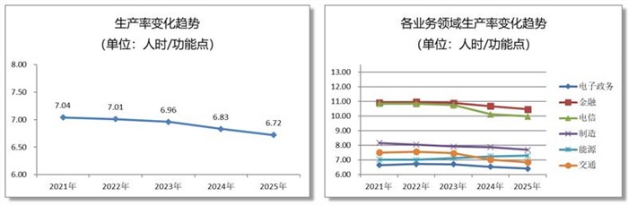2025年软件开发各工程活动工作量分布变化不大,各阶段规模变更因子总体稳定。其中,需求、测试与实施工作量占比略有提升,设计与构建工作量占比则略有下降。