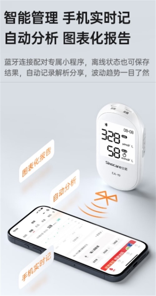 不仅如此,三诺尿酸仪EA-19使用起来也非常方便,可通过蓝牙与手机自动配对,智能记录并分析检测数值。这一功能对于健身人群来说尤为实用,他们可以根据尿酸值的变化及时调整训练强度和饮食结构,从而有效管理尿酸水平,降低痛风的风险。