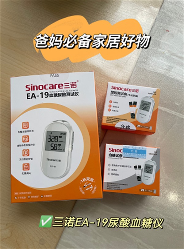 那么,家用尿酸仪什么牌子的好用又准确呢?在网上翻了整整一周,各种尿酸检测仪器家用款看得我眼花缭乱,一番对比之下,我最终决定选择三诺尿酸仪EA-19,主要是考虑到这款产品的准确度有保障。据我了解,三诺尿酸仪的试纸采用了新型银碳十六电极技术,不仅能够检测血样量,还能进行二次校正,有效避免各种内外源物质的干扰,其准确度几乎可以媲美医用设备。此外,试纸还采用了专利抗坏血酸酶设计,能进一步确保监测数值的准确性。在实际应用中,三诺尿酸仪的误差值控制在±15%以内,社交平台上大家也都评价它“采血少、测得准”,让我觉得很靠谱。